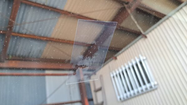 ヒビの部分にも液をかけてフィルムをつけて乾燥させていきます。